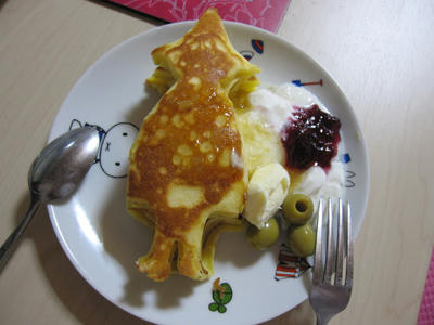 ロイホのホットケーキの粉を買ってきたのでスナフキンの型で焼いてみた♩
