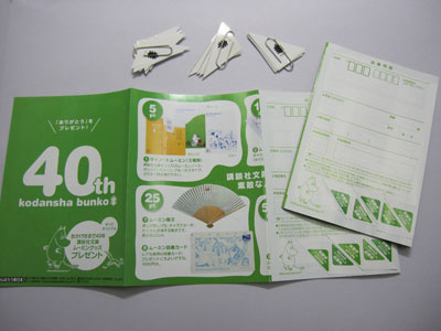 下の台紙に貼ってる方が、対象の帯を集めてグッズに交換できる「講談社文庫40周年キャンペーン」です。